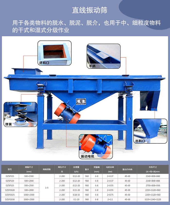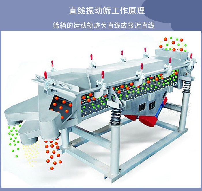 直線振動(dòng)篩篩箱的運(yùn)動(dòng)軌跡為直線或接近直線,它有兩個(gè)軸,所以又稱雙軸振動(dòng)篩。直線振動(dòng)篩水平或傾斜安裝,這類振動(dòng)篩結(jié)構(gòu)緊湊,運(yùn)行平穩(wěn),被廣泛用于各類物料的脫水、脫泥、脫介,也用于中、細(xì)粒度物料的干式和濕式分級(jí)作業(yè)。我廠生產(chǎn)的直線振動(dòng)篩種HZSF型號(hào)就是直線振動(dòng)篩代表性的產(chǎn)品。