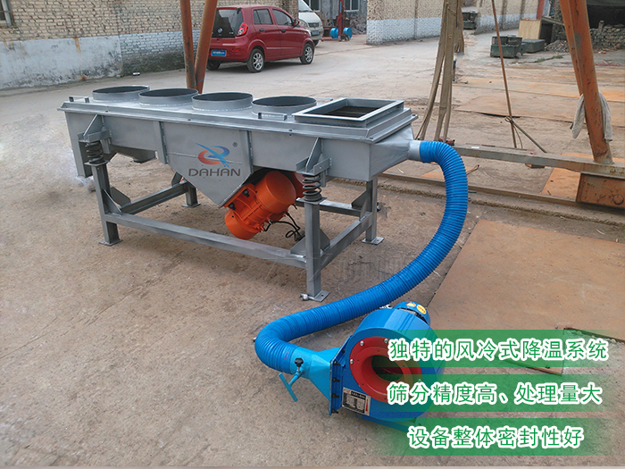風(fēng)冷式直線振動(dòng)篩叫降溫直線篩,是針對(duì)具有高溫特性物料而研制的新型直線篩分設(shè)備。下面小編就為大家具體介紹下它:
