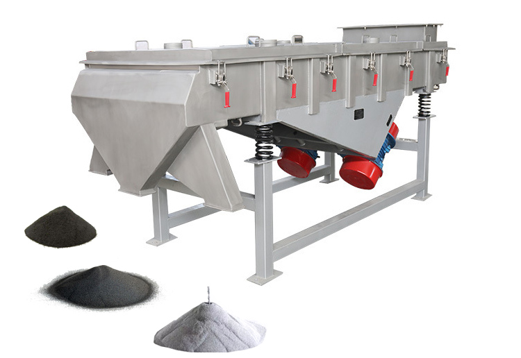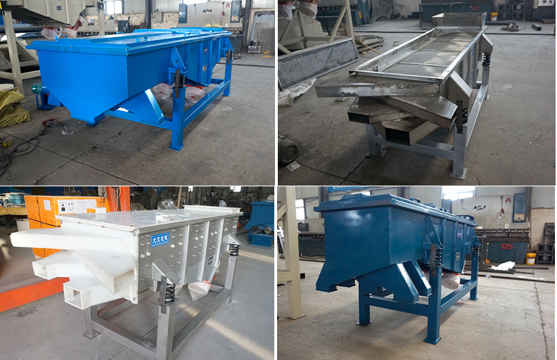 直線振動(dòng)篩簡稱直線篩,其主要功能是分級、過濾和除雜,以兩臺振動(dòng)電機(jī)為振動(dòng)源,使物料在篩面上直線跳躍,物料均勻進(jìn)入篩面,各種規(guī)格的物料通過多層矩形篩網(wǎng)產(chǎn)生并從各個(gè)出料口排出。