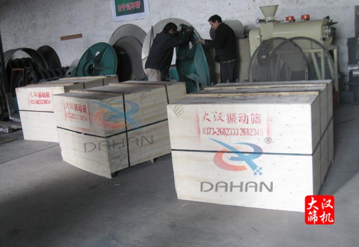 DH-1000型一層振動篩(3臺)木箱包裝,發(fā)貨現場實物圖