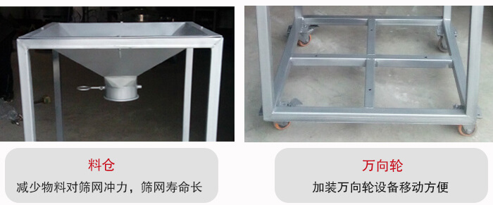 移動式振動篩又叫振動篩料倉一體機,底部加裝萬向輪,可360度旋轉移動,主要應用于篩分場所不固定的環(huán)境,便于用戶移動,滿足不同地點的工作需要。通過調節(jié)料倉中的蝶閥從而控制物料進入振動篩的流量,然后振動篩進行篩分作業(yè),本品的特點間歇性加料,不用工人不間斷投料節(jié)省人工,蝶閥控制流量大小能提高篩分精度。