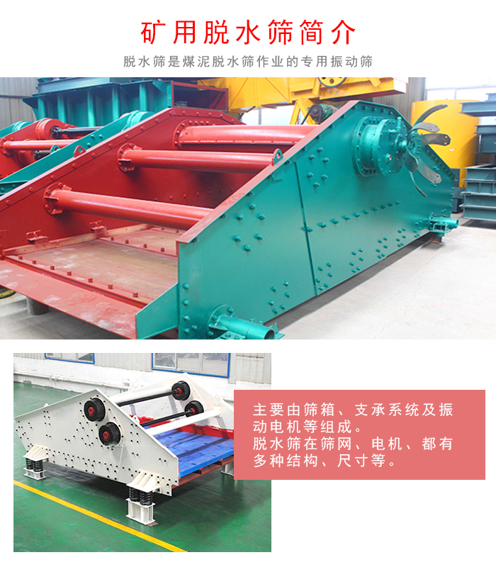 礦用脫水篩是煤泥脫水作業(yè)的專(zhuān)用振動(dòng)篩,它廣泛適用于選煤、電力、選礦、制鹽、化工、制糖等行業(yè)中的細(xì)粒度干式、濕式篩分煤泥回收,過(guò)濾隔粗、壓濾隔粗、其他極細(xì)物料的脫水、過(guò)濾隔粗脫水、脫介、脫泥回收等工藝中。