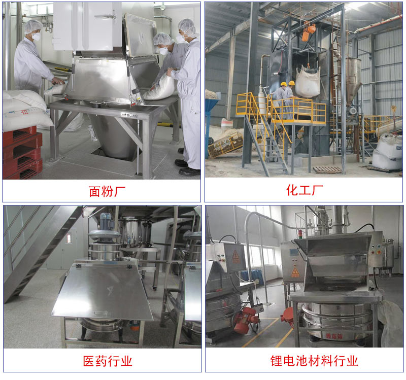 適用:食品、制藥、化工、冶金行業(yè)中小袋物料的拆包、投放、篩分和卸料,特別適用于粉料人工投料和預(yù)篩分。