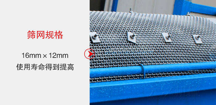 設備篩網(wǎng)是由若干個圓環(huán)狀扁鋼組成,規(guī)格為16mm×12mm,其截面積遠遠大于其它分離設備篩網(wǎng)的篩條截面積故而使用壽命得到提高。