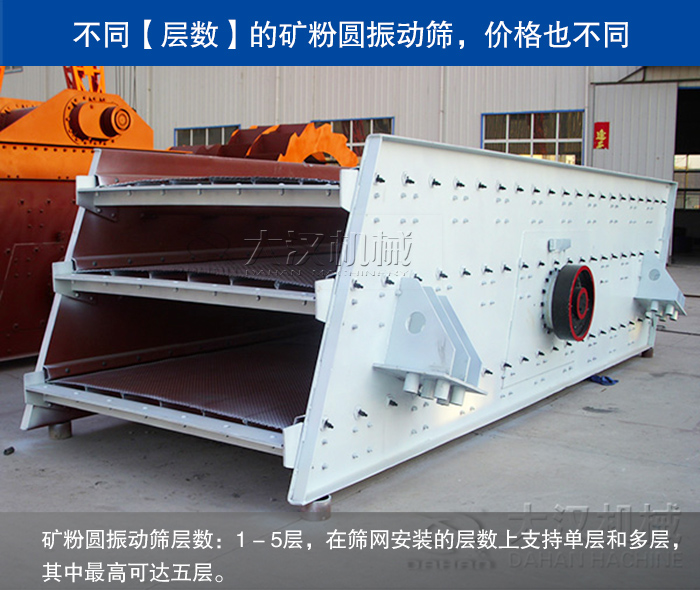 礦粉圓振動篩層數(shù):1 - 5層,在篩網(wǎng)安裝的層數(shù)上支持單層和多層,其中層數(shù)可達五層。